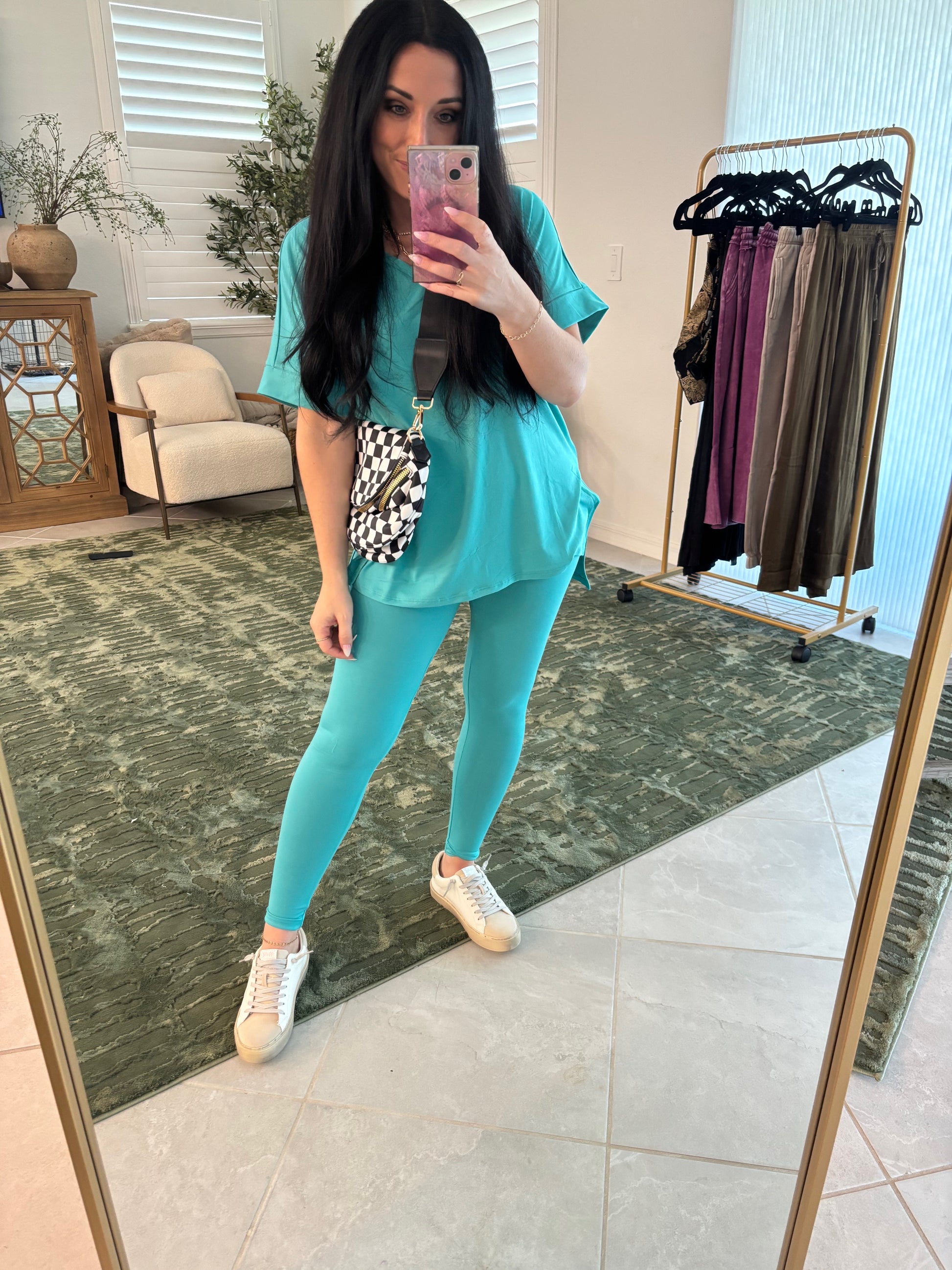 Elevate your cozy chic with our Jordy's Lounge Set—a matching 2 piece blending boho comfort and effortless style for relaxed days or athleisure vibes. Crafted from buttery soft, breathable fabric, this women's green sweatsuit features a long-sleeve pullover top with a relaxed tunic fit and high-waisted leggings for flattering coverage and all-day ease. The versatile olive hue pairs perfectly with our Vintage white sneakers for casual errands or layer it under our Oversized denim jacket for fall outings. Shop this trendy women's loungewear set now for ultimate comfort and subtle sophistication! Available in multiple colors
